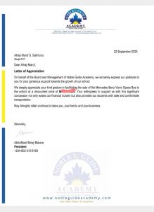 This follows Alhaji Salimonu’s recent donation of a school bus to Medinatul-Irfan Academy in Okene, Kogi State, showcasing his commitment to supporting education.