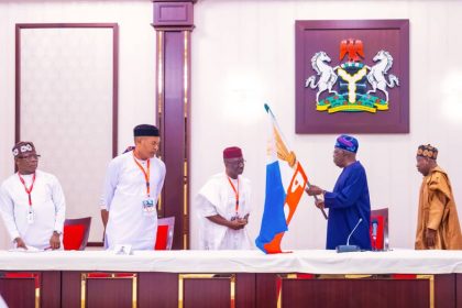 President Tinubu Presents APC Flag To Senator Okpebholo, Says Party On The Path To Victory In Edo Guber