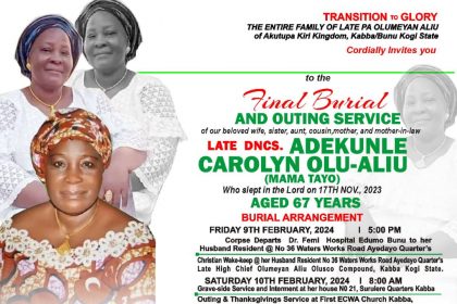 Encomium pours @ Matron Carolyn Olu- Aliu’s ( Nee Aka) burial in Kabba