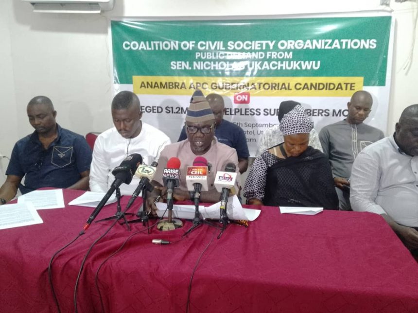 A coalition of over 40 civil society organizations has accused Senator Nicholas Ukachukwu, the All Progressives Congress (APC) governorship candidate in the forthcoming Anambra State election, of failing to either allocate estate land in Lugbe, Abuja, or refund over $1.2m paid by subscribers more than three years ago.