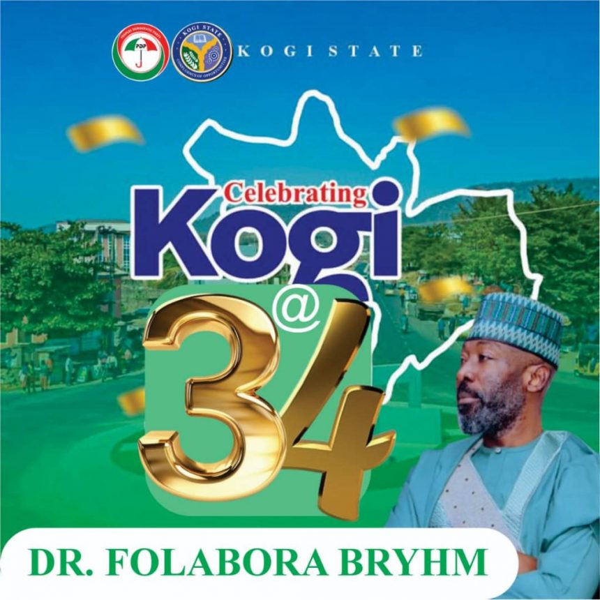 The founder of Folabora Bryhm Foundation, Dr. Folabora Bryhm has extended warm felicitations to the good people and government of Kogi State on the occasion of the State’s 34th anniversary.