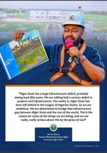 *”Niger State has a huge infrastructure deficit, probably dating back fifty years. We are talking half a century deficit in projects and infrastructure. The reality is, Niger State has been left behind in the League of Nigerian States. So we are ambitious. We are determined to bridge that infrastructure gap between Niger State and the rest of the world. This is the reason for some of the things we are doing, and we are really, really serious about this by the grace of God. “*
