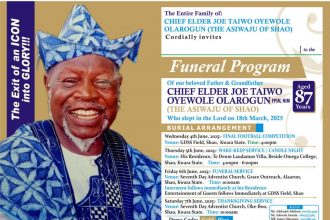 BURIAL ANNOUNCEMENT OF CHIEF ELDER JOE TAIWO OYEWOLE OLAROGUN, FPSN,…