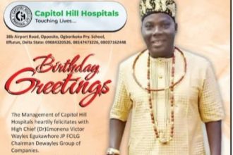 CAPITOL HILL HOSPITAL CONGRATULATES High Chief( Dr) Emonena Victor Wayles Egukawhore JP, FCILG , Chairman De Wayles Group of Companies
