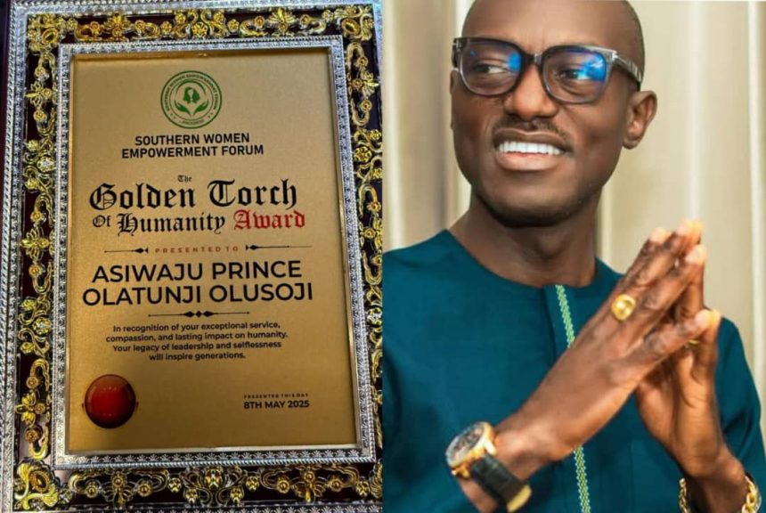 In a stunning tribute to one of the most beloved community leaders, Asiwaju Prince Olatunji Olusoji was honored with the prestigious “Golden Torch of Humanity” Award by the Southern Women Empowerment Forum (SWEF). The award, presented at a ceremony held at Orchids Hotel in Asaba today, May 8, 2025, recognized Asiwaju Prince Olusoji’s exceptional service, compassion, and lasting impact on humanity.
