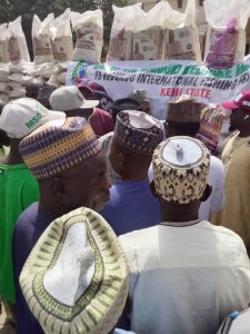Each of the seven Local Government Areas (LGAs) within the two Emirates of Zuru and Yauri received 50 bags of rice along with a cash allocation of ₦500,000.