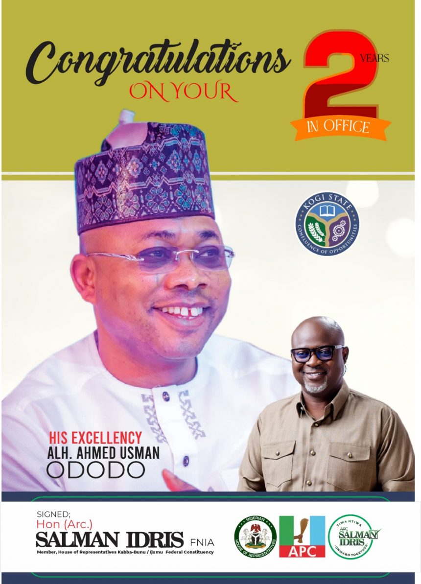 The Member representing Kabba–Bunu/Ijumu Federal Constituency, Hon. Salman Idris has congratulated the Executive Governor of Kogi State, His Excellency Alhaji Ahmed Usman Ododo, on the occasion of his second year anniversary in office.