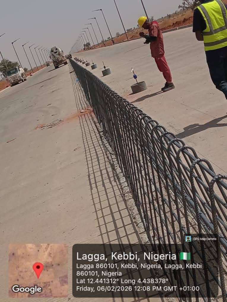 Field reports from Kebbi State indicate that contractors are actively engaged in key construction activities, including extensive earthworks, soil stabilization, priming, reinforcement of road layers, and the gradual installation of modern infrastructure such as solar-powered street lighting. These features are aimed at ensuring durability, improved night-time visibility, and enhanced road safety along the corridor.