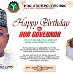 HEARTY FELICITATIONS FROM KOGI STATE POLYTECHNIC TO HIS EXCELLENCY, GOVERNOR AHMED USMAN ODODO, ON HIS BIRTHDAY CELEBRATION