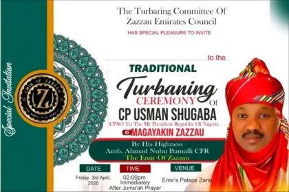 CSO to President Tinubu, Usman Shugaba to be Turban as Magayakin Zazzau today April 3