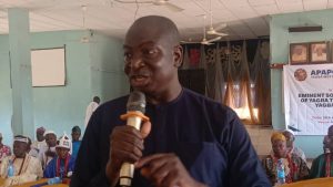 Chairman of AOY Unity Summit 2025 Organizing Committee, Engr Ayodele Osasona addressing delegates during the Summit at Mopa Town Hall on Monday